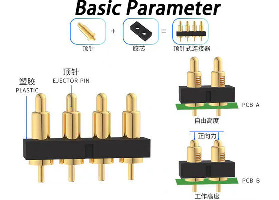 อิเล็กทรอนิกส์ 7pin Spring Loaded Connector กับ Pitch 2.54mm และแรงสปริง 100g±20% อายุจักรยานยาว